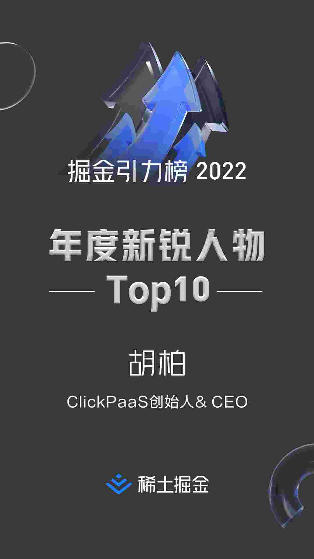 2022年1月6日,,,,稀土掘金社区第一届「掘金未来大会」成功举办,,,,会上发布了“2022 稀土掘金引力榜 年度新锐人物”榜单,,,上海爱湃斯科技有限公司(简称美团钱包商家版)创始人及CEO胡柏实力入选年度新锐人物TOP 10。。。